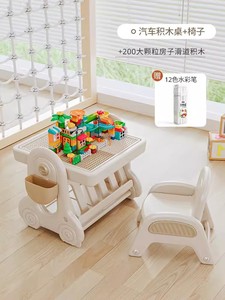 汽车积木桌+椅子+202大颗粒动物房子积木【送画笔】
