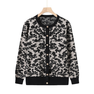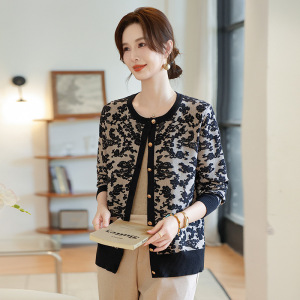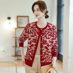 中老年女装时尚洋气提花上衣服开衫2025妈妈秋冬装针织衫毛衣外套