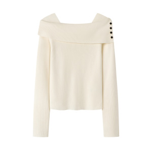 00AA-1100一字肩针织衫2025秋季新款温柔风纯色修身显瘦套头上衣