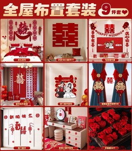 结婚全屋婚房布置套装婚礼新房拉花气球女方男方卧室装饰用品大全