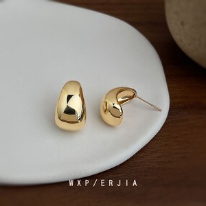 通勤百搭镀真金蚊香盘耳夹高级感轻奢水滴形气质光面无耳洞耳饰女