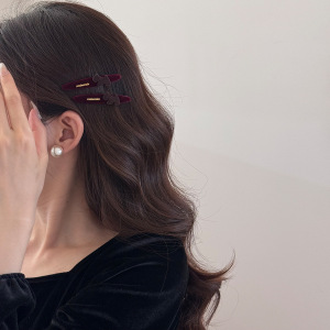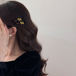 港风文艺复古小狗字母发夹女气质侧边刘海一字夹子发卡百搭鸭嘴夹