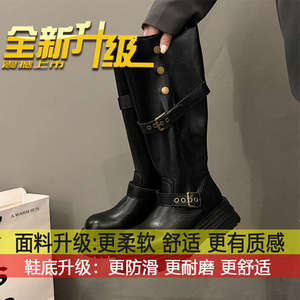不过膝增高骑士靴子女2025新款秋季棕色复古英伦风粗跟厚底长筒靴