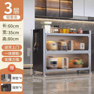 厨房置物架防尘餐边柜大容量收纳储物加厚多层多功能微波炉翻门柜