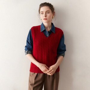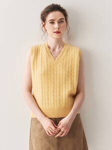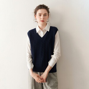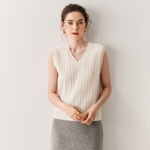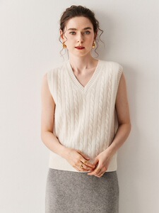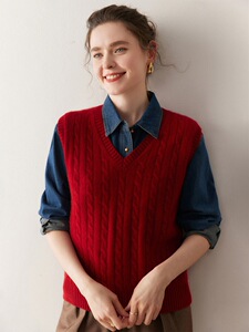 气质叠穿~麻花山羊绒针织马甲背心女v领套头2025秋冬新款显瘦坎肩