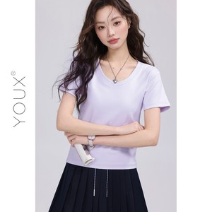 又巷【马卡龙叠叠乐】多色百搭短袖t恤女2025夏新款时尚圆领上衣