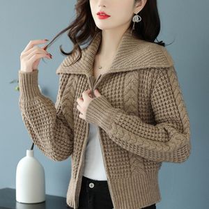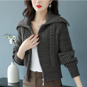 针织开衫加厚粗毛线毛衣外套女2025秋冬装新款海军领拉链长袖上衣