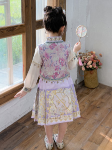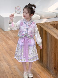 女童马面裙2025新款国风新中式春秋汉服儿童古风古装套装连衣裙套