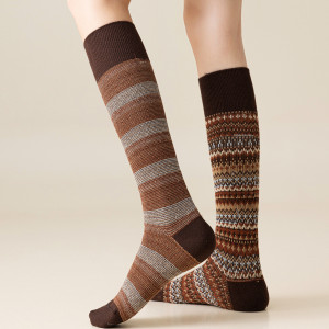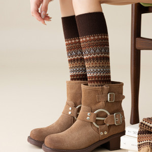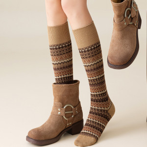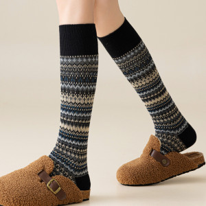 法式长筒袜子女秋冬双针双路高筒复古堆堆袜保暖配靴子显瘦小腿袜