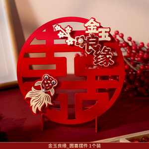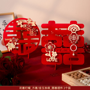 花喜灯耀_圆喜/金玉良缘_方喜摆件2个装