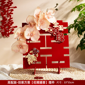 高配版-创意方喜+圆喜【花蝶嬉喜】摆件