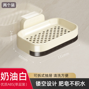 肥皂盒壁挂式卫生间免打孔双层肥皂沥水盒家用浴室收纳香皂置物架