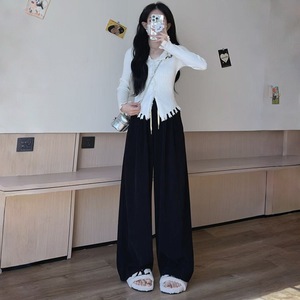 现货2025秋季新款高腰窄版慵懒风弯刀裤阔腿裤直筒休闲裤运动裤女