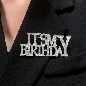 欧美跨境彩钻英文字母生日胸针男女时尚西装别针胸花配饰生日礼物