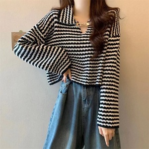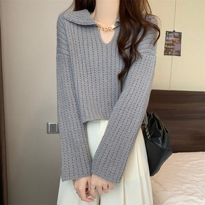 韩系秋冬新款翻领链条针织套头衫设计感休闲慵懒风毛衣女软糯上衣