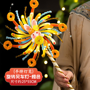 中秋节灯笼旋转风车发光灯笼扭扭棒手工diy材料儿童手提兔子花灯