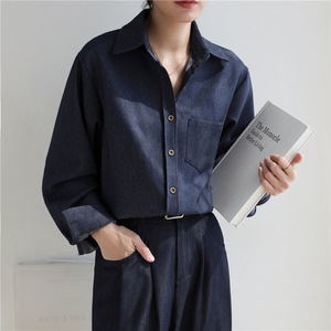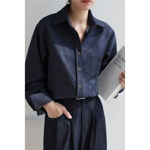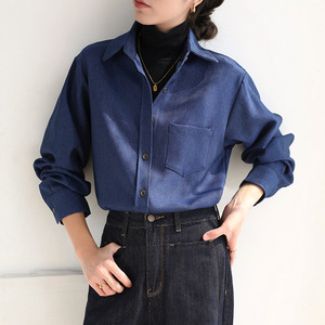 2025秋冬复古仿牛仔垂顺抗皱叠穿宽松显瘦正肩牛仔衬衫外套女