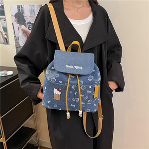 2025新款双肩包大容量通勤百搭牛仔饼干背包复古百搭韩系双肩包