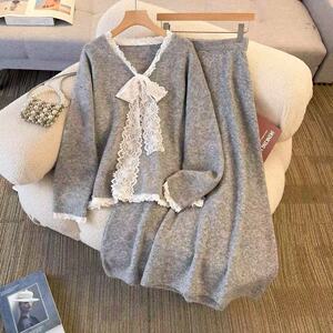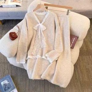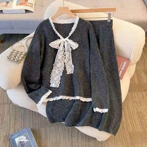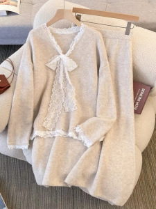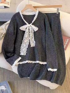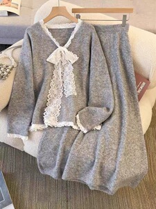 大朗跨境供货源头工厂显瘦针织衫毛衣套装秋冬新款梨型身材两件套