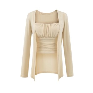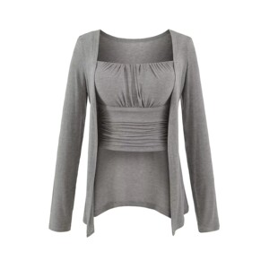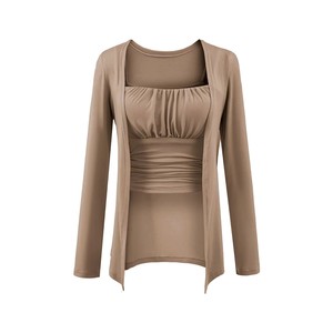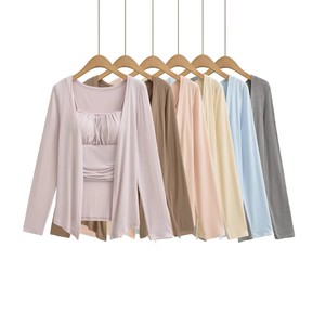 韩系氛围感长袖薄款外套女秋吊带两件套防晒开衫短款披肩外搭上衣