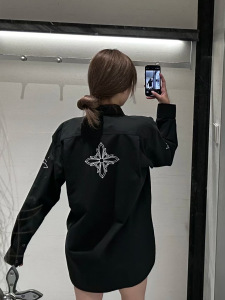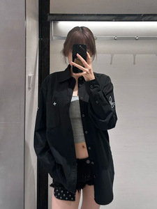 高版本~设计师十字花刺绣水洗工装上衣阔身衬衣25年秋季男女同款