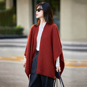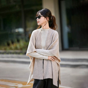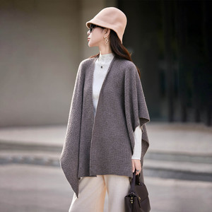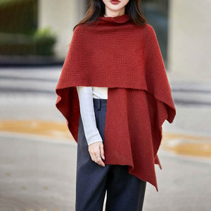2025款不规则设计感斗篷针织围巾女休闲百搭洋气回字纹羊毛大披肩