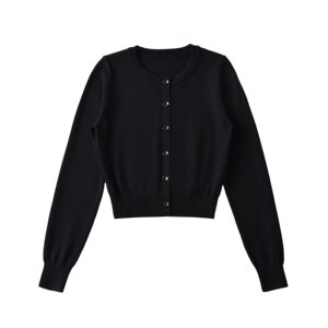 短款纯色针织开衫女2025秋季新款气质辣妹圆领单排扣修身毛衣上衣