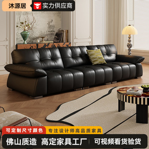 法式复古风黑色轻奢头层牛皮菲茉沙发家用直排设计师款客厅沙发