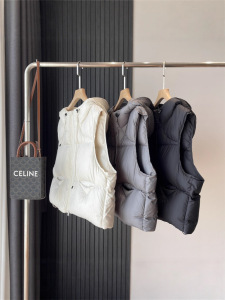 肯豆风白鹅绒轻柔泡芙蓬松连帽绒羽绒马甲女坎肩外套女装批发货源