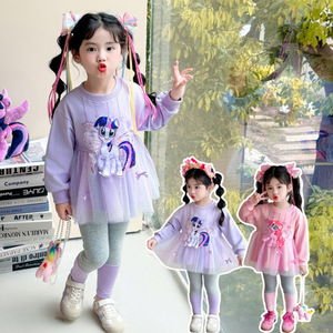 女童2025秋季新款卫衣裙儿童春秋装韩版洋气女宝宝秋季网纱连衣裙