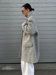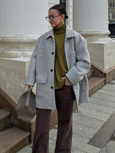 气质简约风纯色单排扣口袋毛呢翻领外套女2025跨境欧美风秋冬新款