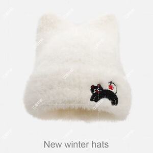 韩版秋冬季帽子女款毛线针织帽显脸小包头帽百搭可爱猫耳保暖冷帽