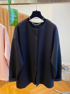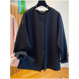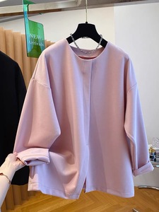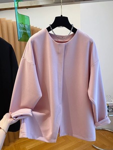 跨境韩国极简设计感小众粉色卫衣女春秋25新款宽松大版遮屁股上衣