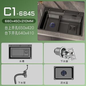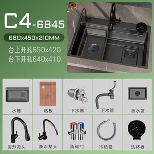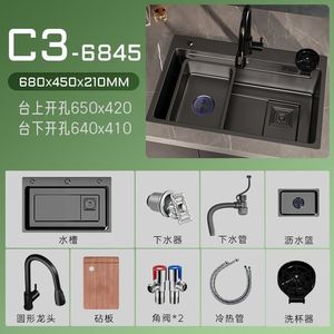 纳米灰3毫米【6845】双筋版-C抽拉龙头+洗杯器