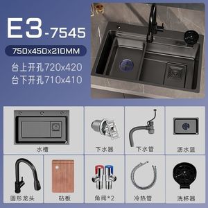 纳米灰3毫米双筋版【7545】-D抽拉龙头+洗杯器+净水龙头