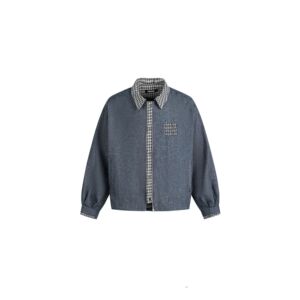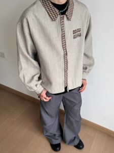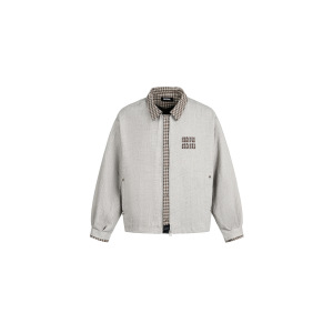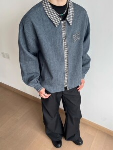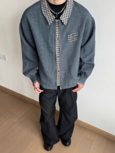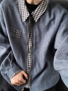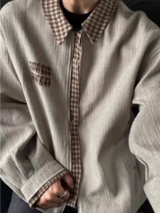 老钱风格纹拼接假两件翻领夹克男款复古简约休闲宽松百搭拉链外套