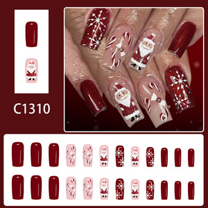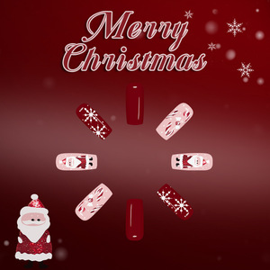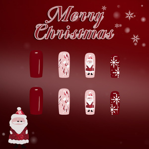 中水管亮面2025新款圣诞节美甲红色圣诞老人雪花闪粉拐杖糖果24片