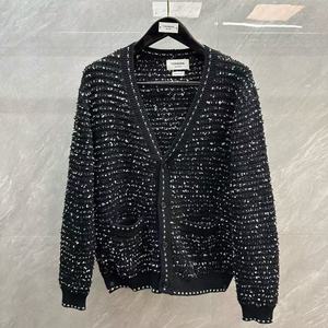 工厂直营TB粗花呢V领开衫毛衣休闲百搭男女同款长袖针织衫
