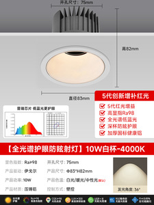 【全光谱护眼射灯】白杯-10W-4000K-75开孔