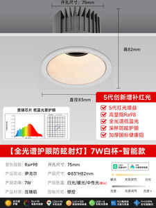 【全光谱护眼射灯】白杯-7W-智能调光调色-75开孔