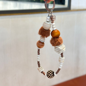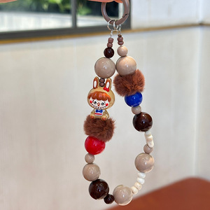 秋冬毛绒可爱甜酷娃娃挂绳手机链手机钥匙扣串珠通用挂链挂件短款
