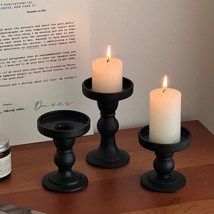 欧式复古黑色罗马柱玻璃烛台感轻奢摆件高脚底座香薰蜡烛台座日用