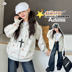女童外套2025年早秋新款卡通卫衣开衫中大童韩系连帽衫春秋上衣潮