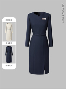 职业高级感连衣裙秋季气质修身收腰物业客服前台工装售楼部工作服