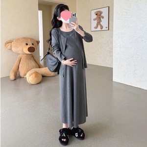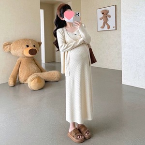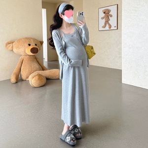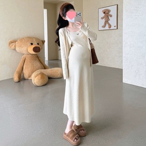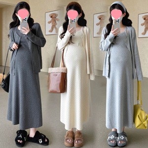 孕妇连衣裙2025秋冬新款套装镂空刺绣气质针织两件套休闲开衫