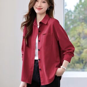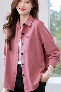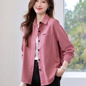 棉质衬衫外套女春秋新款女士长袖牛仔衬衣小个子妈妈休闲外搭上衣