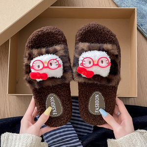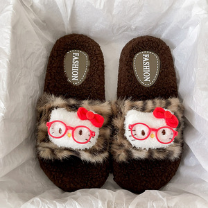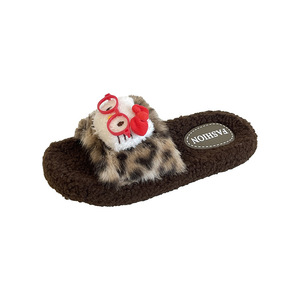 豹纹kt毛毛拖鞋女外穿2025秋冬新款网红爆款时尚百搭防滑棉拖鞋女