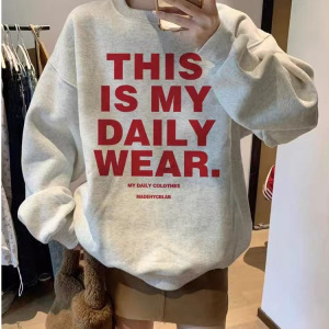 美式复古字母印花圆领卫衣女2025新款春秋宽松慵懒风加绒加厚上衣