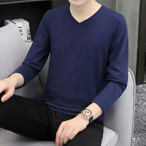 春秋男士长袖t恤青年V领棉质休闲打底衫秋衣上衣潮流休闲外穿单件