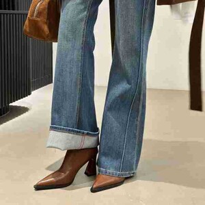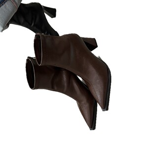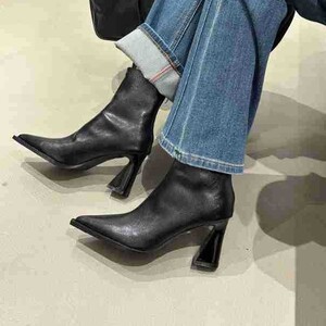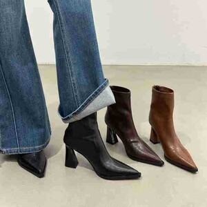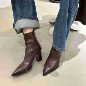 法式尖头及踝短靴女2025年秋冬季新款短筒瘦瘦靴粗高跟小裸单靴子